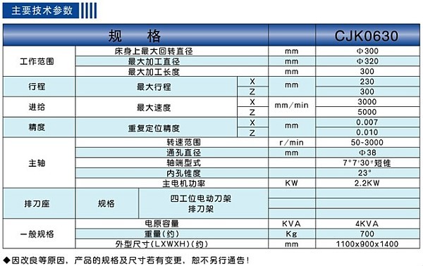 公司生产的CJK系列数控机床具有精密高、规格齐、结构合理、通用性强、造型美观等优点。采用高精度轴承,导轨使用超音频淬火,经久耐用。车床采用弹簧快速夹紧,电机直接带动主轴皮带轮传动,并配有纵横定位装置控制行程,能完成内外圆车削、端面车削、切断、割槽等,是仪表仪器、电器、汽车零配件、轴承及小五金行业零件加工的理想设备。